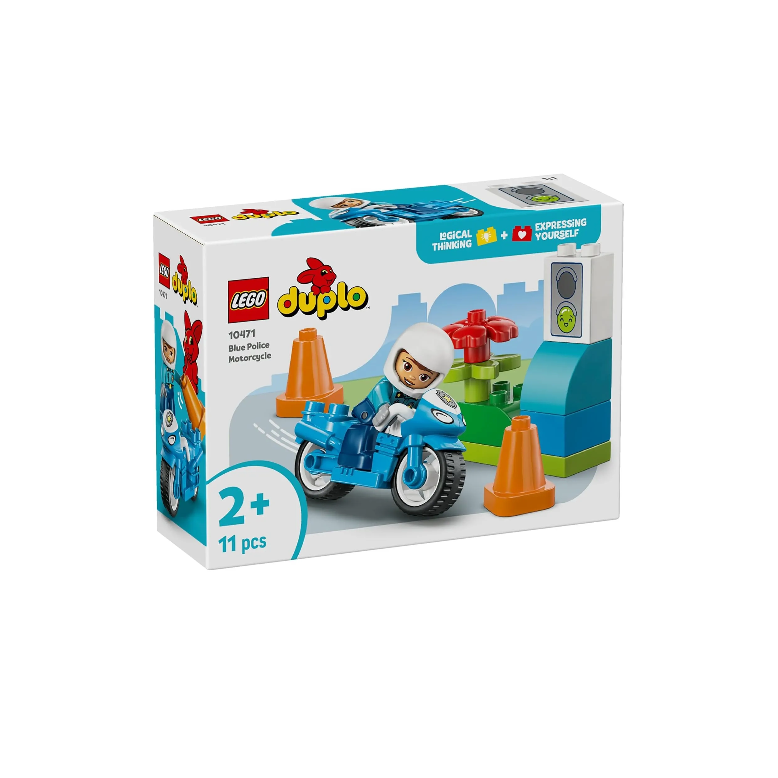Bring action-packed play to toddlers aged 2+ with the LEGO® DUPLO® Town Blue Police Motorcycle (10471). This fun learning toy lets little ones create community-helper stories as a police officer patrols the roads on a bright blue motorcycle.