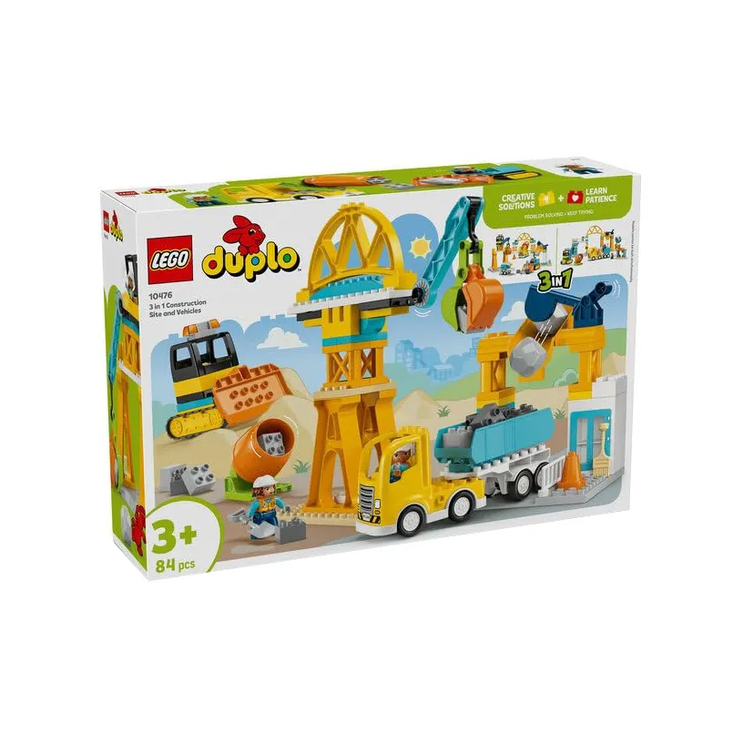 Spark hands-on building fun with LEGO® DUPLO® Town 3 in 1 Construction Site and Vehicles (10476) for toddlers aged 3+. This versatile construction playset lets little builders load, lift and tip as they create a busy worksite with multiple vehicles and structures.