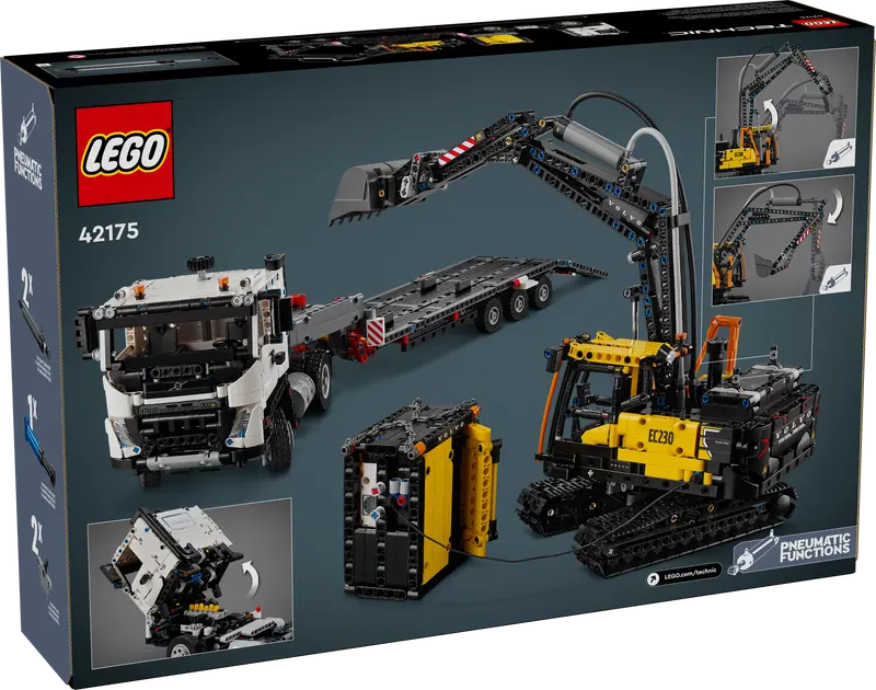 Inspire kids aged 10+ to build and explore heavy-duty construction vehicles with the LEGO® Technic Volvo FMX Truck & EC230 Electric Excavator (42175). This immersive set features a Volvo FMX truck, flatbed trailer, electric excavator, and a pretend charging station for realistic role play.