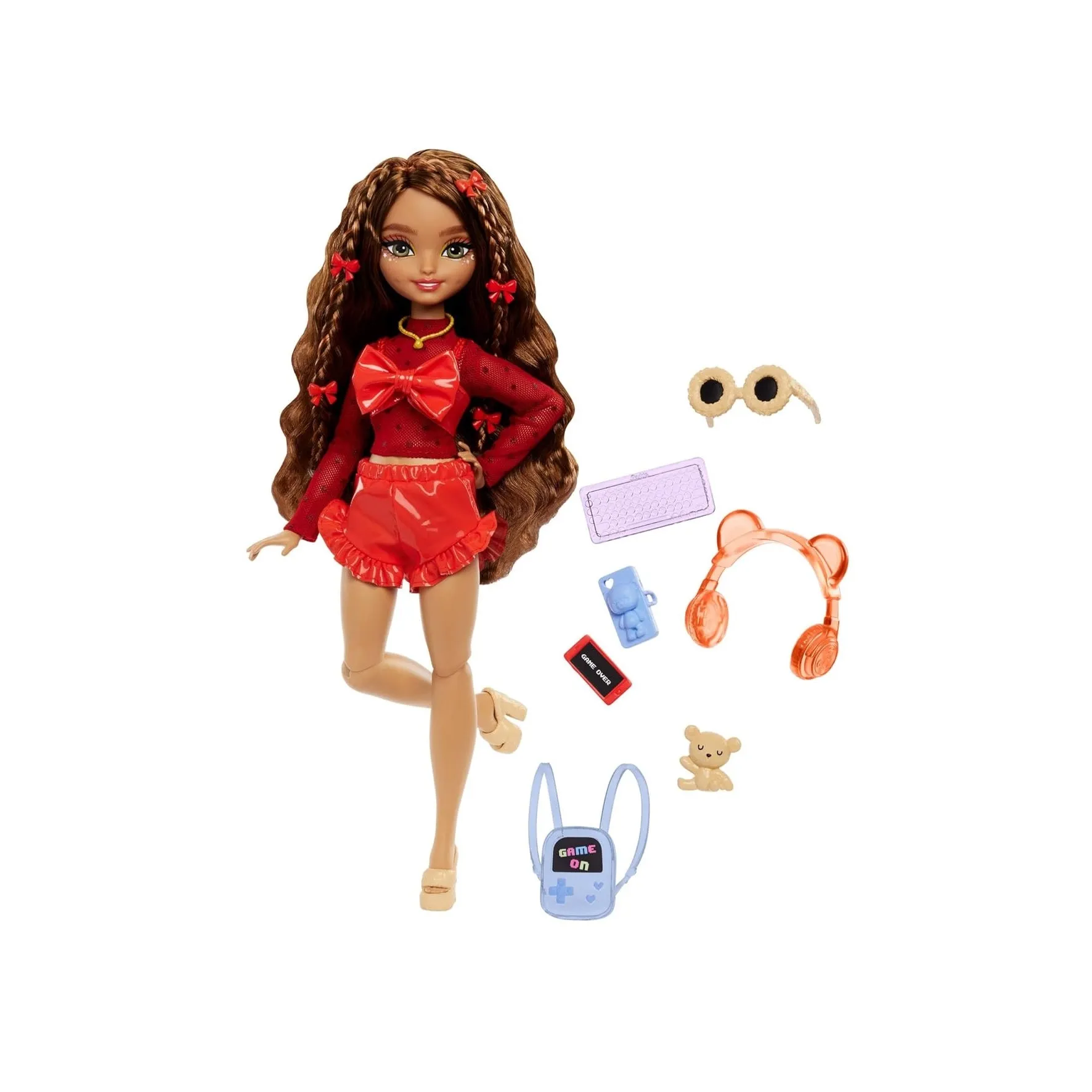 Accessories: 10 pieces with video game‑themed items such as game controllers, headset, themed props, and more