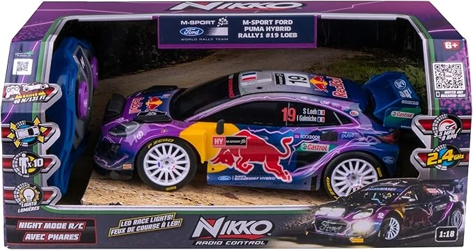 Modeled after the iconic M-Sport Ford Puma Hybrid Rally 1, this high-precision racer is engineered to dominate every course. Packed with pro-level parts — from a lightweight vac-formed body to a 360° drive motor and independent suspension — this machine is built for serious speed. The quick-charge 9.6V LiFePO4 USB battery keeps you racing longer, while Nikko’s Elite controller gives you the precision needed to rule every turn.