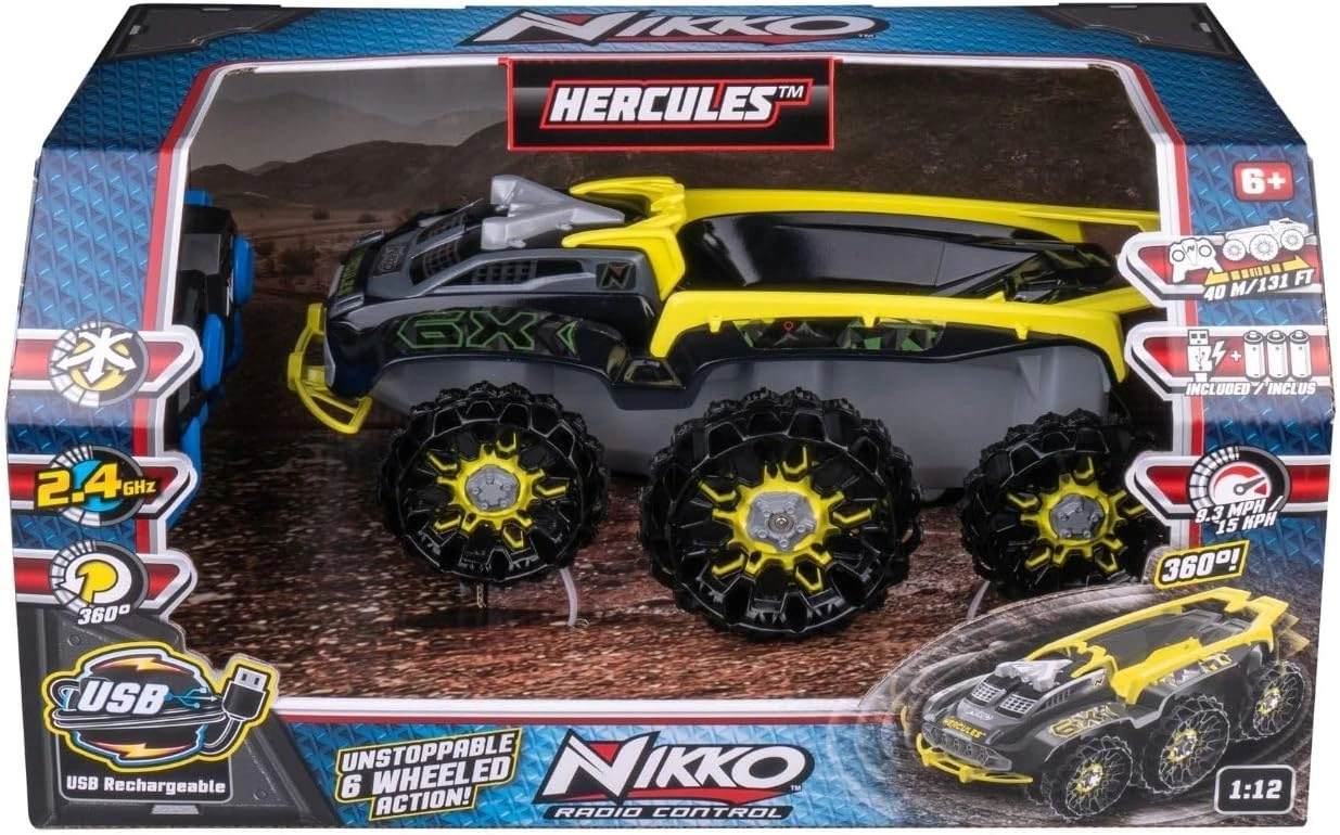 Unleash the power of Hercules with Nikko RC. This 6-Wheeled Off-Road RC hero can take on all terrains. Fueled by a formidable USB rechargeable 6.4V LiPo battery, blaze along at 15 km/h (9.3mph) using the precise controls of Nikko’s 2.4GHz remote. Brace for breathtaking 360-degree spins and herculean stunts, and elevate your RC experience to legendary proportions with the Hercules from Nikko RC.