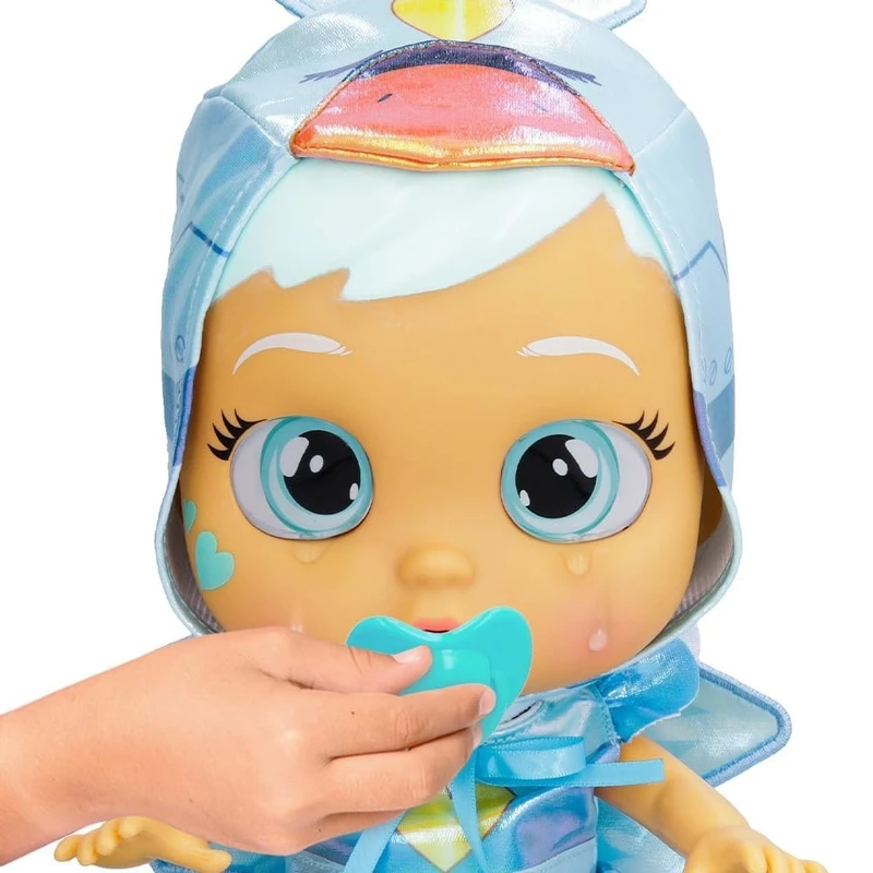 Meet the new Cry Babies Sydney, a delightful addition to the Magic Tears family! This 10-inch doll features rooted hair, glass eyes, a softer and improved head, and a lighter weight for more realistic play. For the first time, Sydney comes dressed in charming dressy clothes. Like all Cry Babies, she cries real tears and makes baby sounds when her pacifier is removed. Plus, she has an extra magical feature: her cheeks blush when kissed, making nurturing and imaginative play even more enchanting. Designed for children aged 3 years and up, Sydney is perfect for storytelling, role play, and collecting.