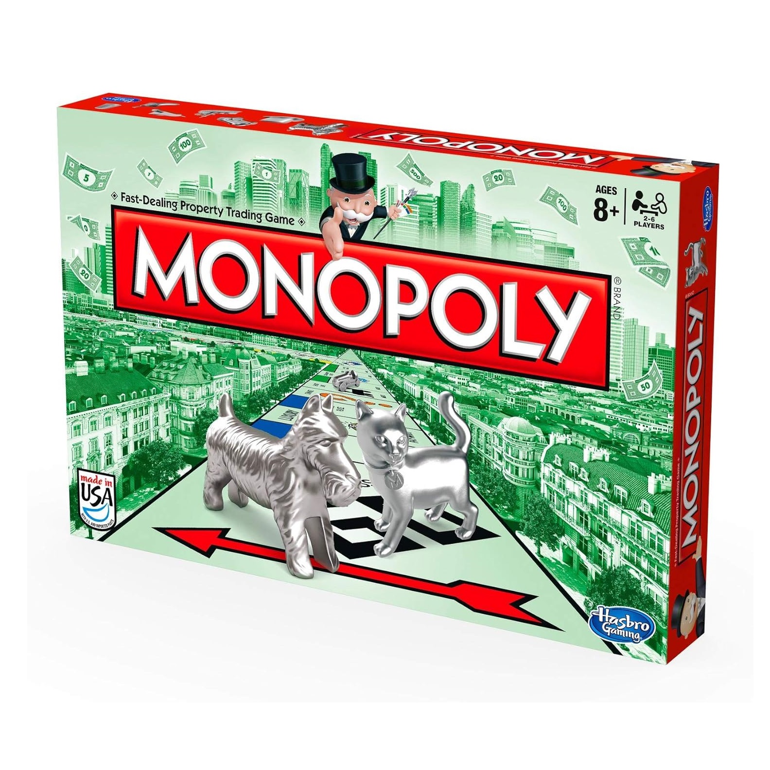 Featuring classic Monopoly gameplay, this beloved board game is all about buying neighborhoods, charging rent, trading properties, and building houses and hotels to grow your empire. But watch out—Chance and Community Chest cards can change everything in an instant, making you rich or sending you straight to Jail!