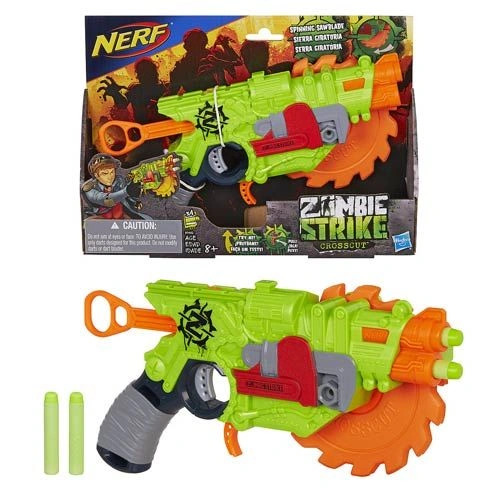 Gear up for action with the Nerf Zombie Strike Crosscut Blaster! This awesome single-fire blaster lets kids defend against imaginary zombie attacks with power and style. Featuring a built-in foam chainsaw-style blade for added role-play fun, the Crosscut brings battles to life with every pull of the trigger. Compact, lightweight, and easy to handle, it’s perfect for fast-paced outdoor adventures and zombie-themed play. Load, aim, fire — and slice through the apocalypse in true Zombie Strike fashion!