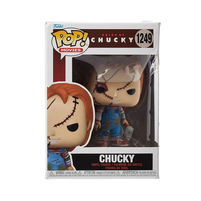 Schedule a playdate with Bride of Chucky Pop! Chucky. Capture him to haunt your Pop! Movies collection. Vinyl figure is approximately 4 in (10.2 cm) tall. Comes in a window display box.